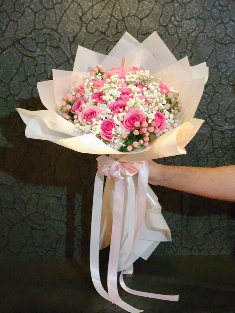 This stunning bouquet is available in three sizes, each designed to showcase the beauty of fresh blooms. The image displayed features our Deluxe Size option.